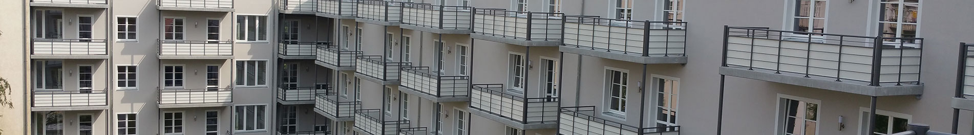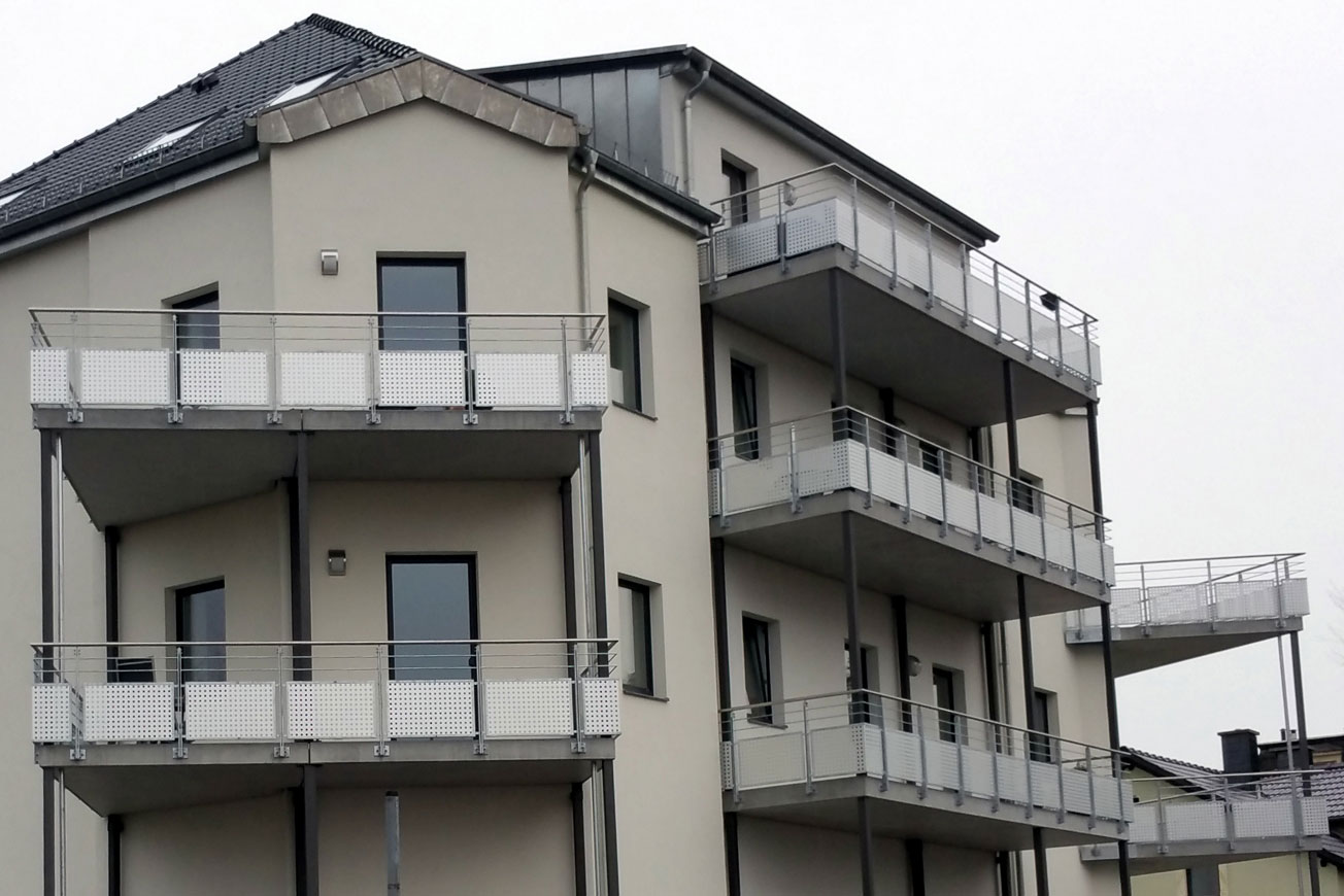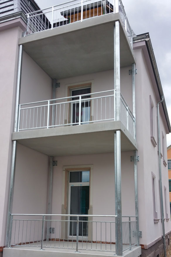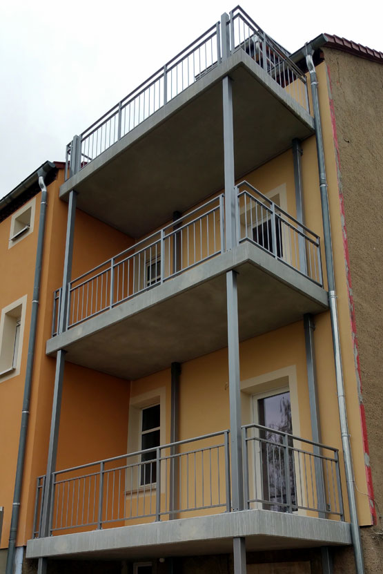 Stahlbalkone mit Betonbodenplatten sowie Stabgeländer, feuerverzinkt und nasslackbeschichtet