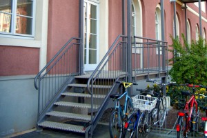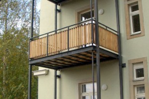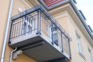 Balkonanlage mit Stabgeländer und Betonbodenplatte