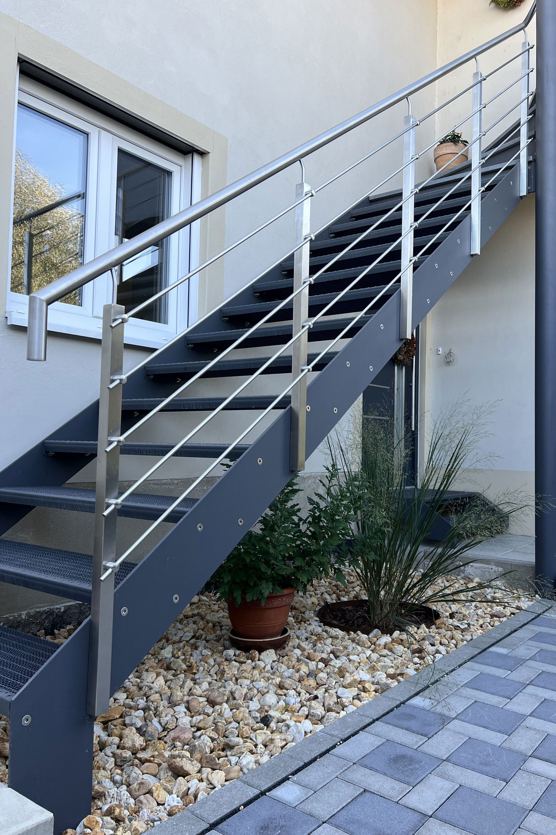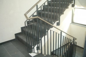 Treppengeländer pulverbeschichtet mit aufgesetztem Edelstahlhandlauf