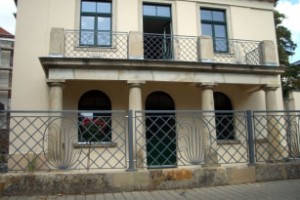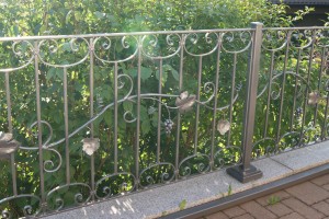 Schmiedeeisernes Geländer – ein Teil restauriert und ein Teil nach Vorbild neu gefertigt.