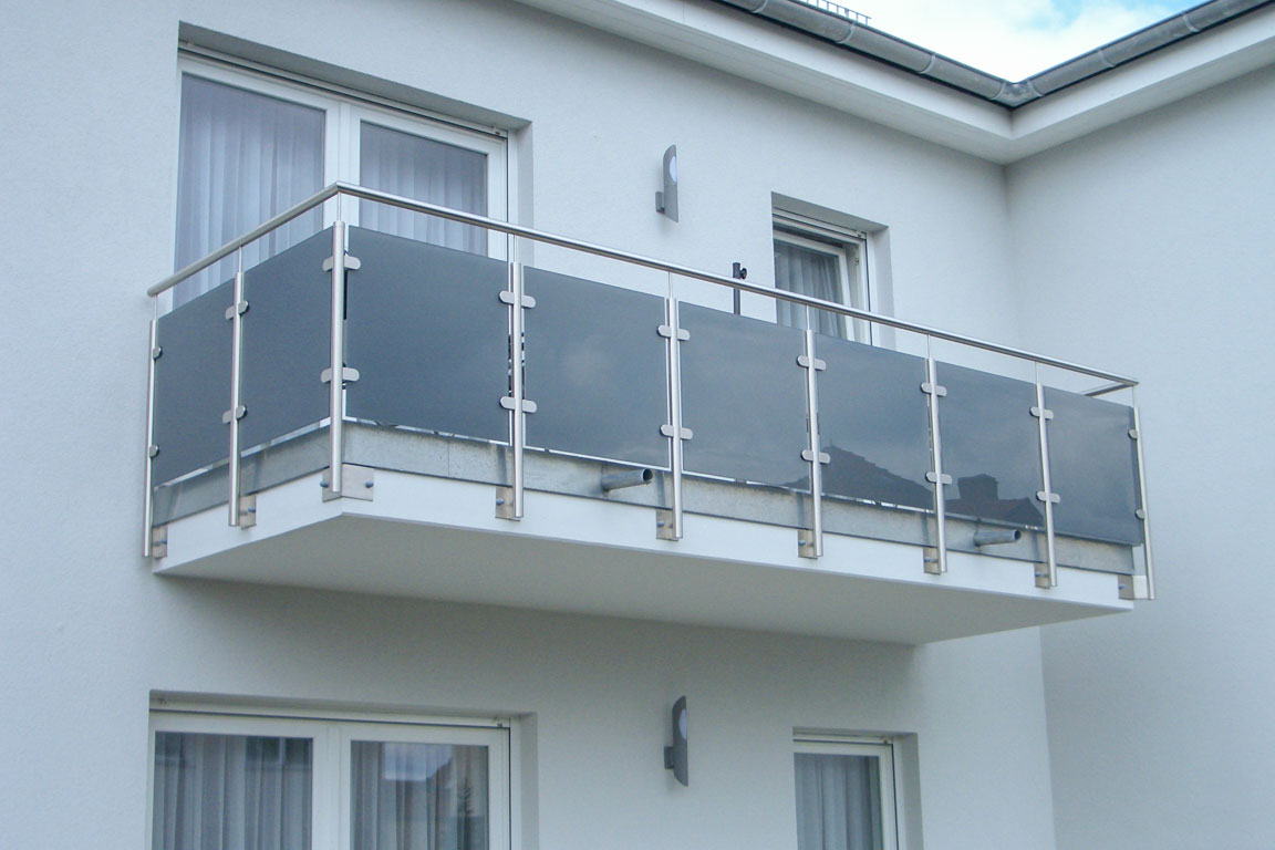 Balkongeländer mit hinterlegtem Trespa als Sichtschutz